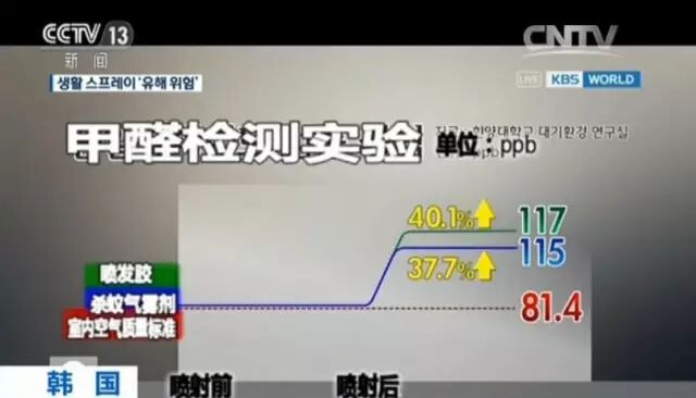 但由于喷发胶、杀蚊剂等喷剂归食药处管理,而被排除在检查对象之外,成为“漏网之鱼”韩国放送公司KBS近日通过实验发现,喷射了喷发胶和杀蚊气雾剂之后,室内有害物质会骤增