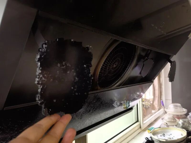 接到报料后,记者赶到黄先生家中黄说,当天上午7时许,他在家煮早餐,当时还使用过抽油烟机上午10时许,他正在厕所里洗漱,突然听到“嘣”的一声,原来以为是洗碗机里的碗没放好跌落,跑出来一看,才知道是抽油烟机一块钢化玻璃爆裂。