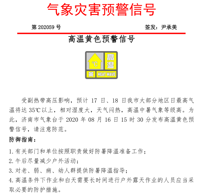 2020年8月17日06时昨日,山东多地已发布高温预警!