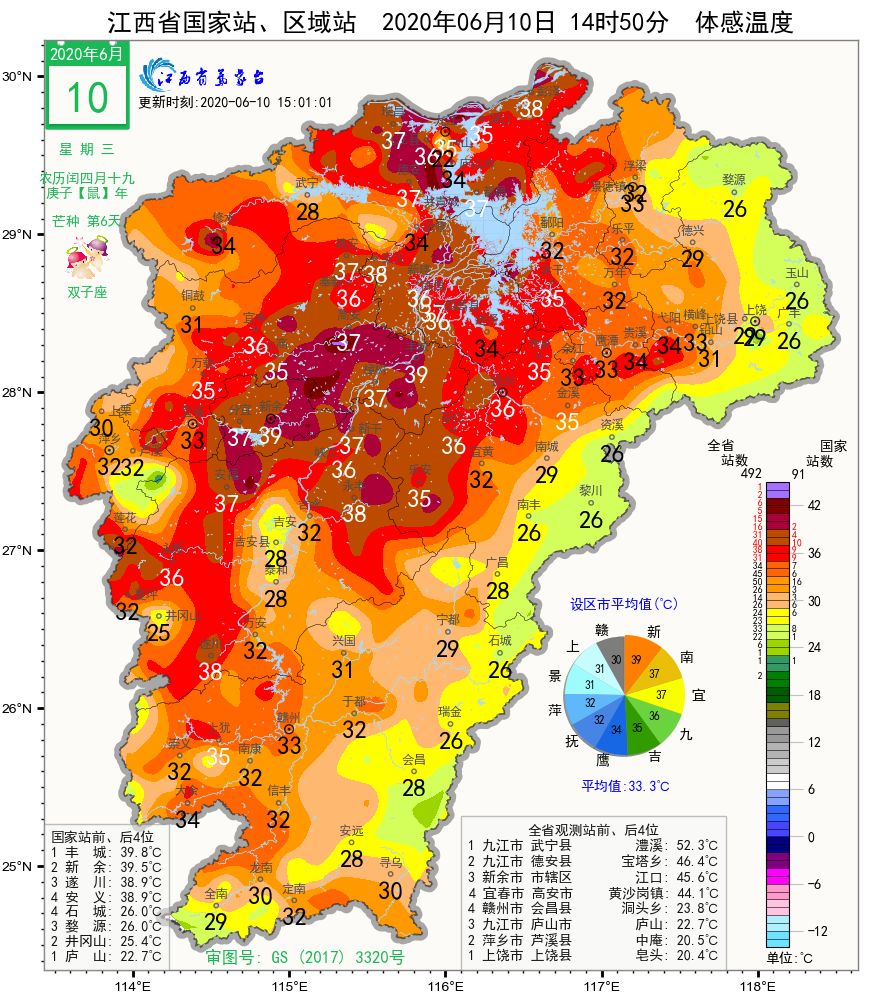 我们省中部一些地区会出现高温譬如 吉安↓↓↓