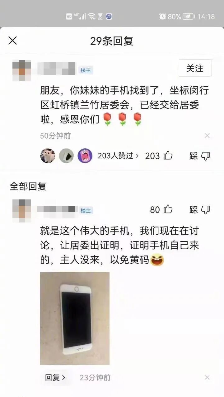 听到这一消息,闵行区虹桥镇物资保障部门立即联系了送到菜的兰竹居委,并通过居委把寻机信息发到了业主群里。很快,就有居民反馈收到了手机,就这样,这部来上海“一日游”的扬州手机“完璧归赵”。