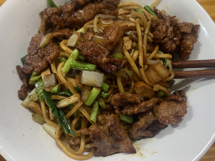 面的浇头给的很足,牛里脊量大肉厚,提前腌制过,味道倒是比面要足些,但也偏咸,口感实在用不了“滑嫩”一词……