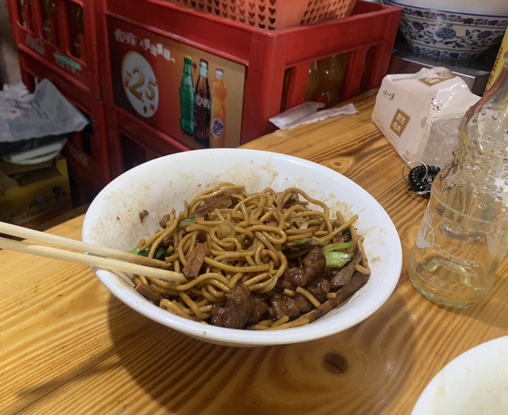 38度的暑天,食客们或挤在拥挤的店内或直接坐在店外迎着夏日阳光吃面,用餐环境基本可以忽略但转念一想,当我们去过越来越多没有最精致只有更精致的餐厅饭店,也许这样的市井氛围、江湖气息更容易让人感到熟悉与亲切。