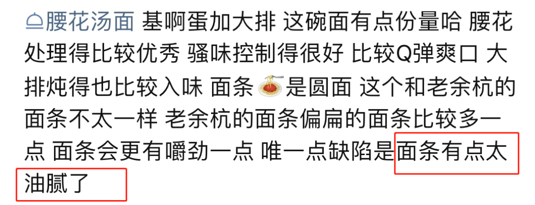 还有不少网友评价“面太油”,“浇头不错,面条不讨喜”。