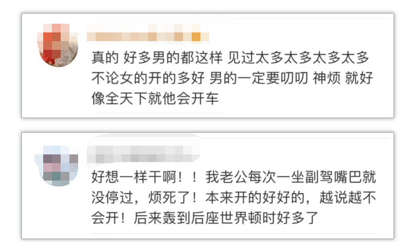 别怪网友吐槽副驾唠叨的老公“话多真的会害死人”去年10月5日,湖北咸宁的肖女士开车带家人外出时,副驾上的老公不放心,不断给出操作意见,之后两人在车上发生争执来源:沸点视频肖女士对老公的指点很是烦躁脚下油门越踩越深。