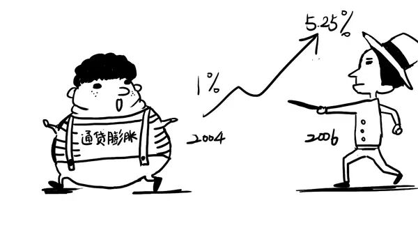 每一个泡沫,都有一根针等着一口吃成的胖子肯定是不健康的美联储在坚持了几年的低利率后为了抑制通货膨胀这个小妖精在2004年6月到2006年6月的两年里连续17次提高利率将联邦基金利率从1%提高到5.25%