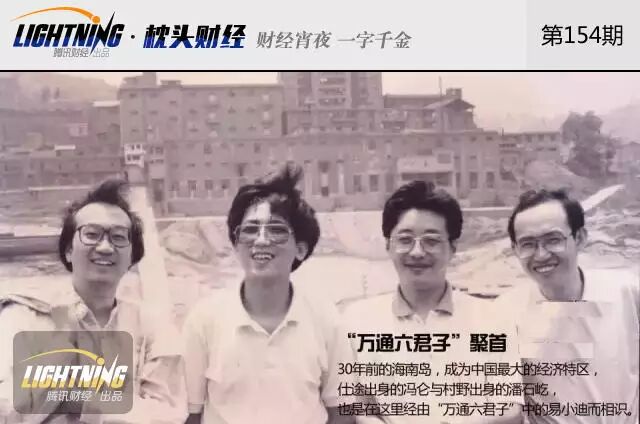 (图为潘石屹、冯仑、王功权、刘军、王启富、易小迪“万通六君子”30年前在海南开发房地产淘得第一桶金) (来自:腾讯财经)