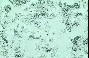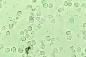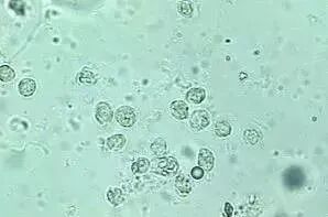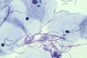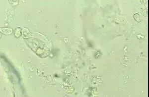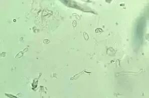 阴道纤毛菌:镜检可见具尖端的许多细胞。二个或更多的细胞排列在长度可变的无隔菌丝体中,长达200微米的丝状体彼此环绕着。