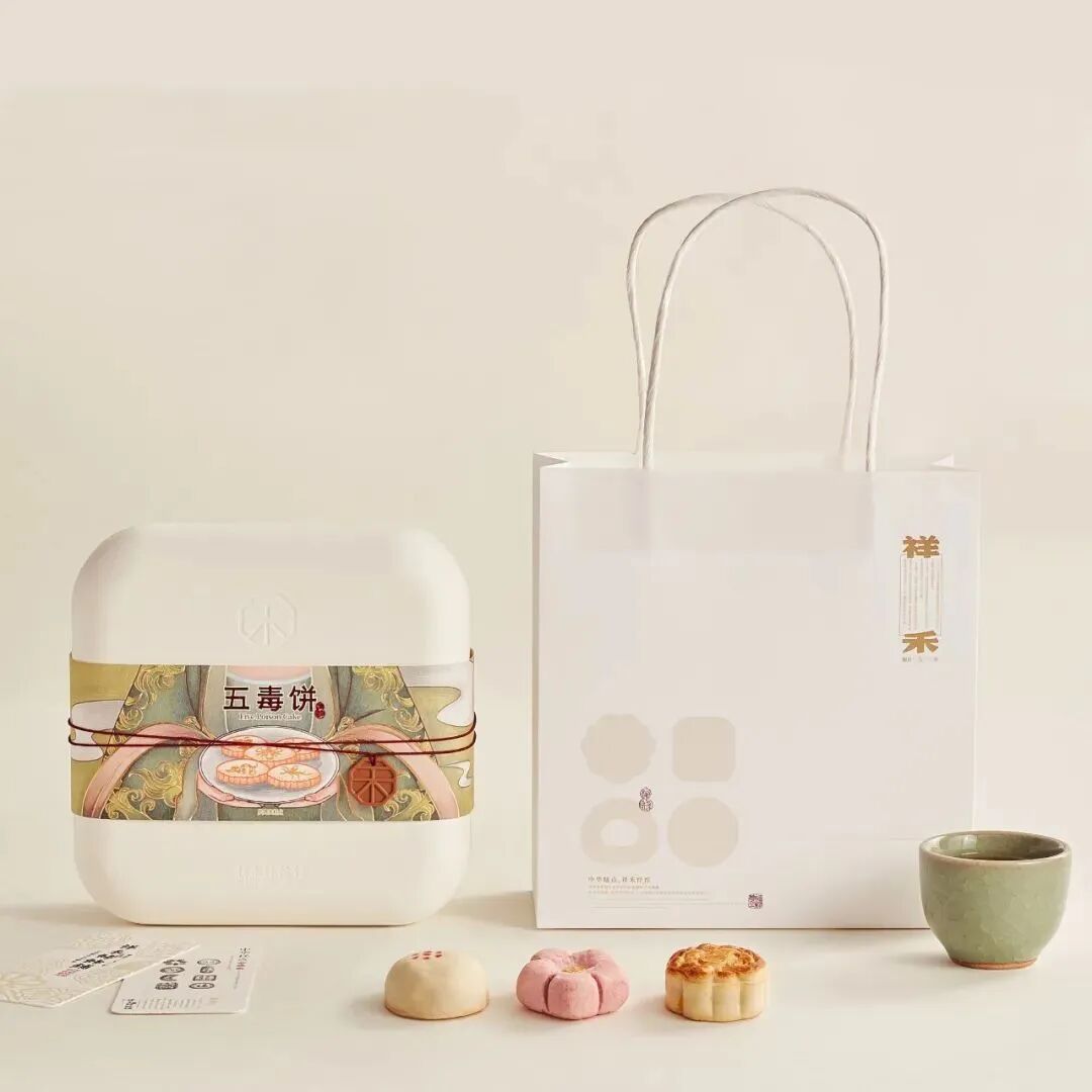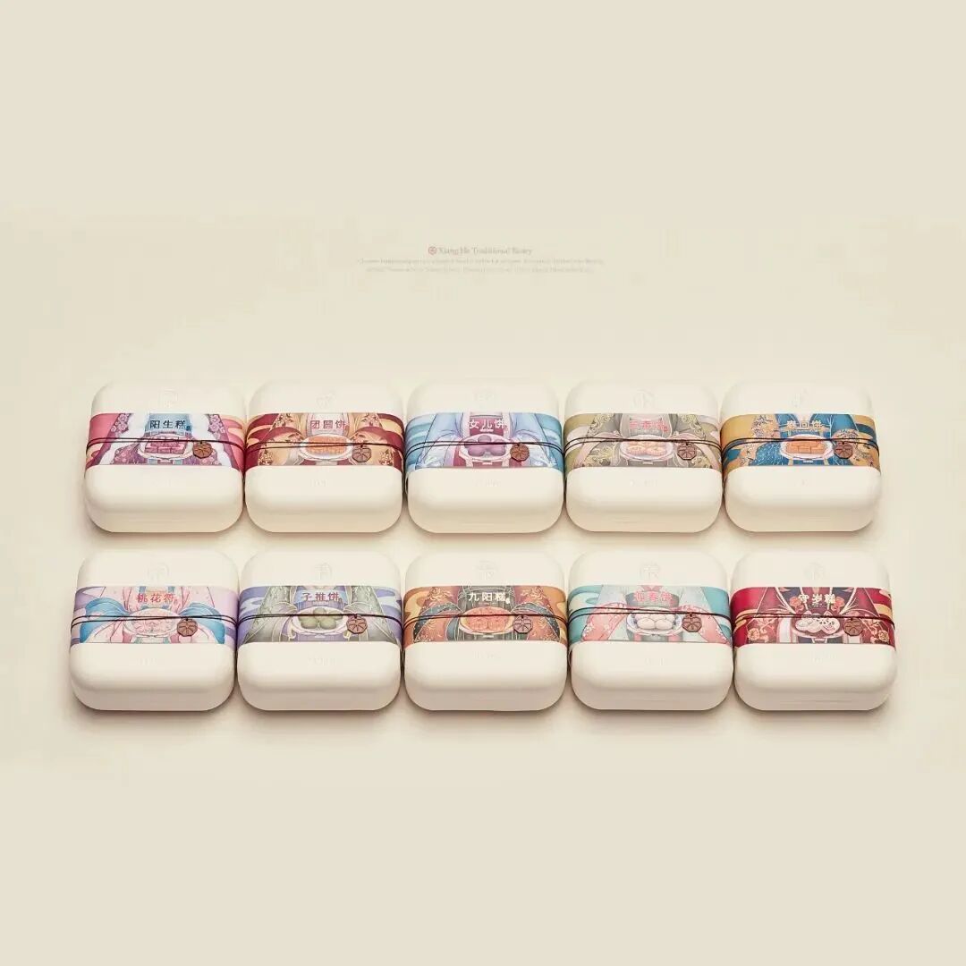 图文来源:包联网03 祥和糕点祥和糕点作为中国糕点老字号,贯彻其传承中式传统文化的设计理念,以汉服作为设计切入点,又结合产品的时令性在仕女服饰中融入中国的二十四节气以及传统节日元素,搭配中式古典颜色盒体则采用纸浆模塑工艺,以竹浆、甘蔗浆等作为原料,在使产品更具整体感的同时兼顾环保属性。