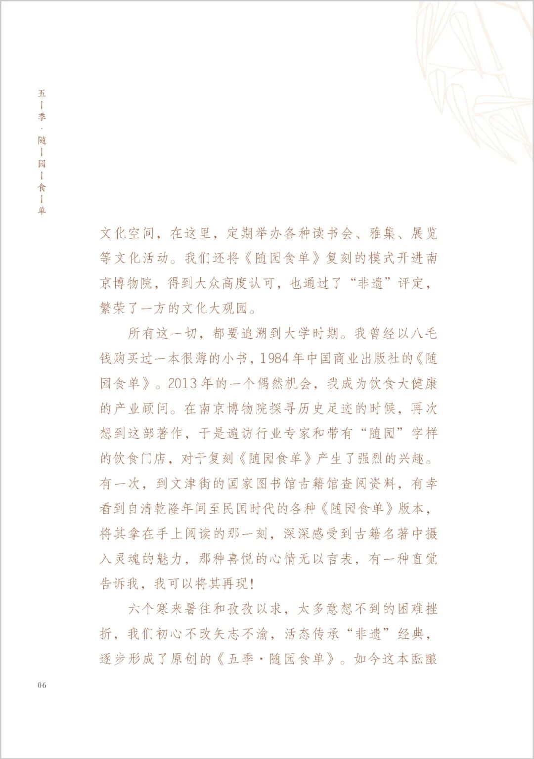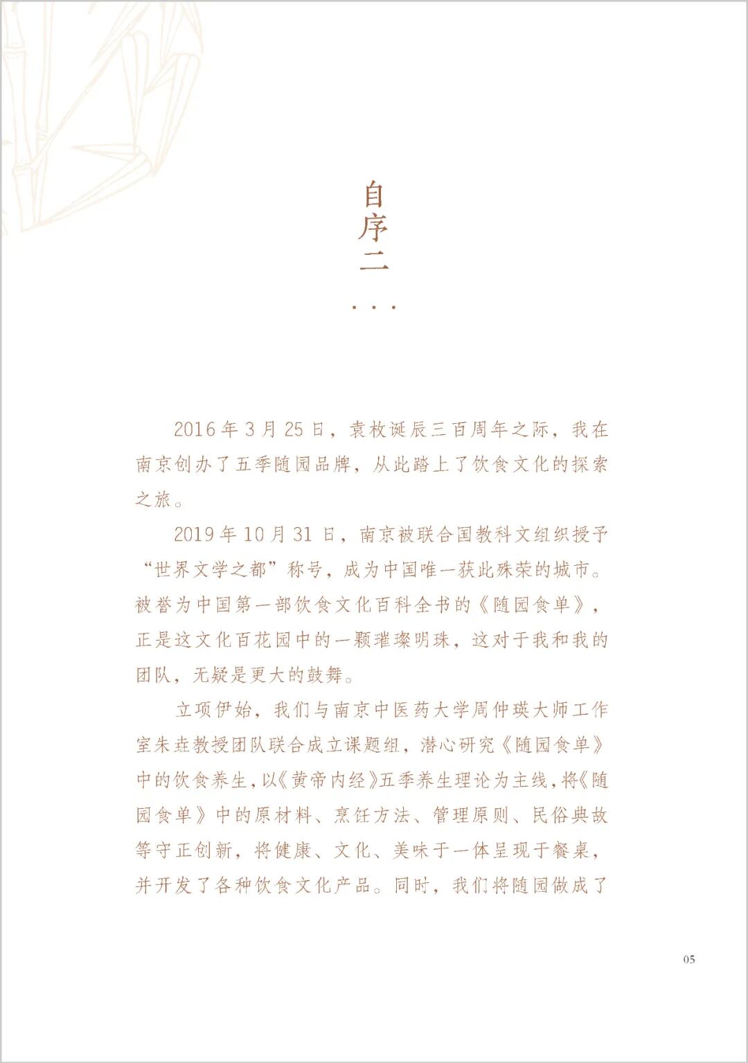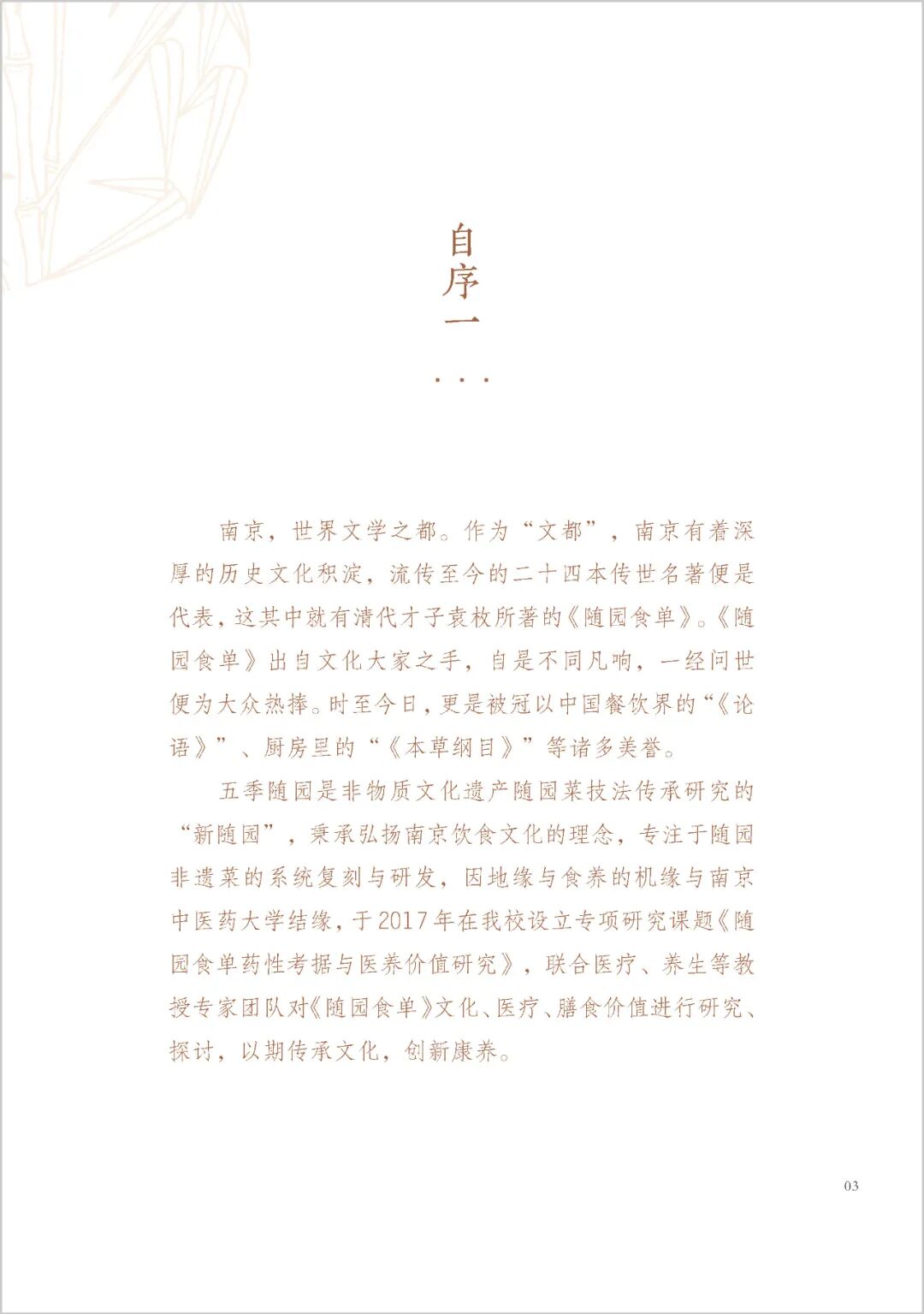 时至今日,更是被冠以中国餐饮界的“《论语》”、厨房里的“《本草纲目》”等诸多美誉 五季随园是非物质文化遗产随园菜技法传承研究的“新随园”,秉承弘扬南京饮食文化的理念,专注于随园非遗菜的系统复刻与研发,因地缘与食养的机缘与南京中医药大学结缘,于。