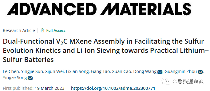 【论文链接】https://doi.org/10.1002/adma.202300771【作者单位】西南科技大学;吉林大学;清华大学深圳研究院【论文摘要】锂硫(Li-S)电池被认为是实现500Wh kg