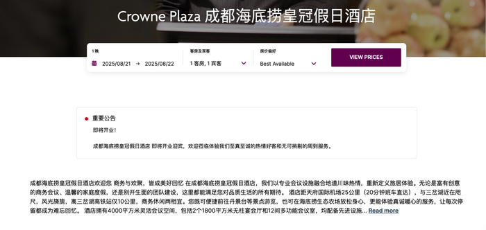 文 | 源Sight王言除了摆摊卖汉堡之外,五星酒店玩的“花活”越来越多。最近,IHG(洲际酒店集团)官网显示,成都海底捞皇冠假日酒店(下称“海底捞皇冠酒店”)即将正式营业。