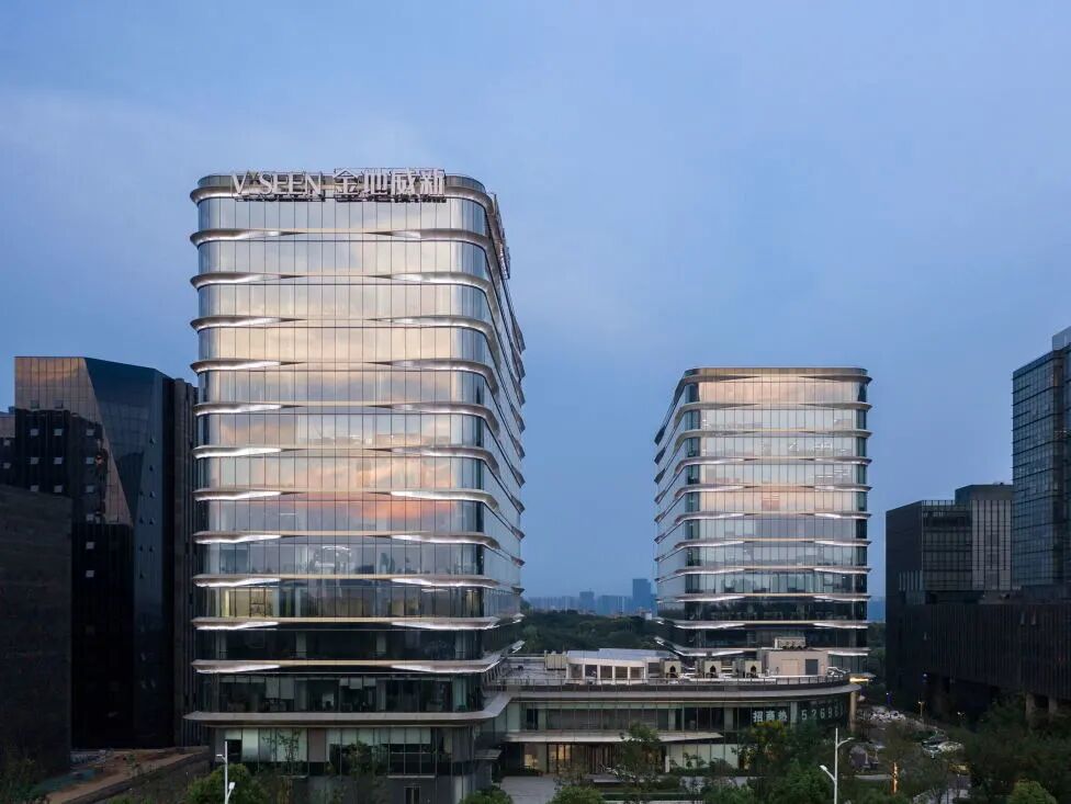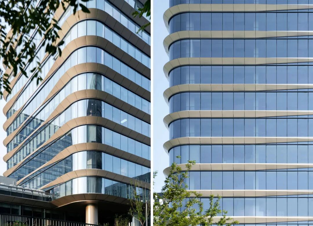 南京金地威新•雨花创新中心 ©摄影:行知影像成都麓湖云龙阁,每层均有数十种不同半径的曲面玻璃以及数十个不同曲率的曲线从不同角度仰观建筑,所呈现的建筑形态都各不相同,涟漪般的建筑造型使建筑仿佛时刻深处流动之中。