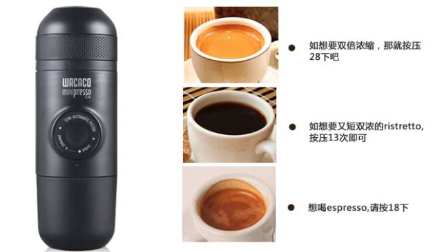 那么这款被称作史上最小的浓缩咖啡机(杯)Minipresso会深得你的喜爱由法国设计师Hugo Cailleton于香港所创立的WACACO公司推出的「Minipresso手压浓缩咖啡壶」意在满足所有热衷咖啡的人随时随地想喝咖啡的愿望。