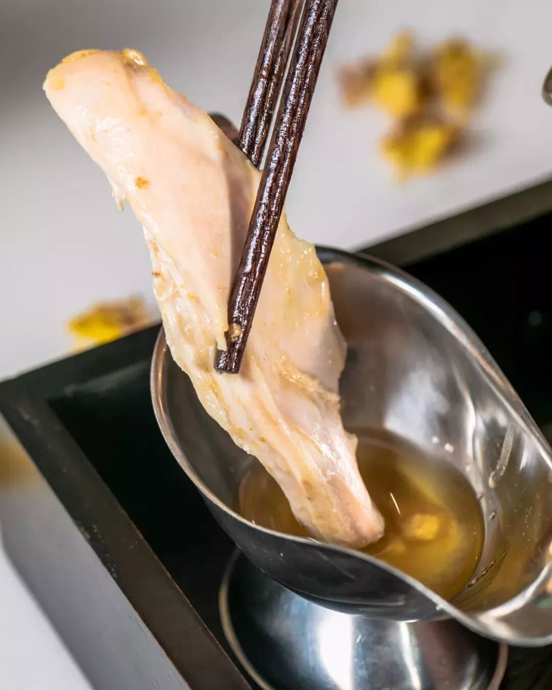 蘸着鸡油吃就更香了,口感浓郁,满嘴都透着鸡肉的咸香味。