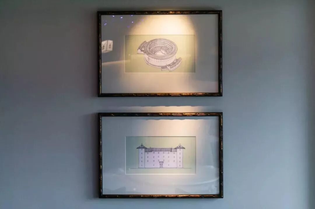 墙上的装饰画和投影都在描述客家的人文风情,从菜品做法到房屋建筑特色,每处都是浓缩的客家文化。