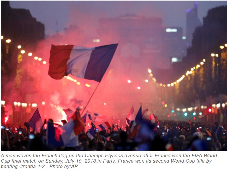 法新社截图儿子王煌杰告诉记者,法国战胜比利时后,有法国老主顾上门,紧急追加了两单:十几万面法国小国旗和几万条冠军围巾“最终法国队捧起大力神杯,我们仓库里几十万面法国旗子早已备好,时刻准备发货”王煌杰说在世界杯赛事前后的几个月里,该公司接下了几百万面大大小小的国旗订单,