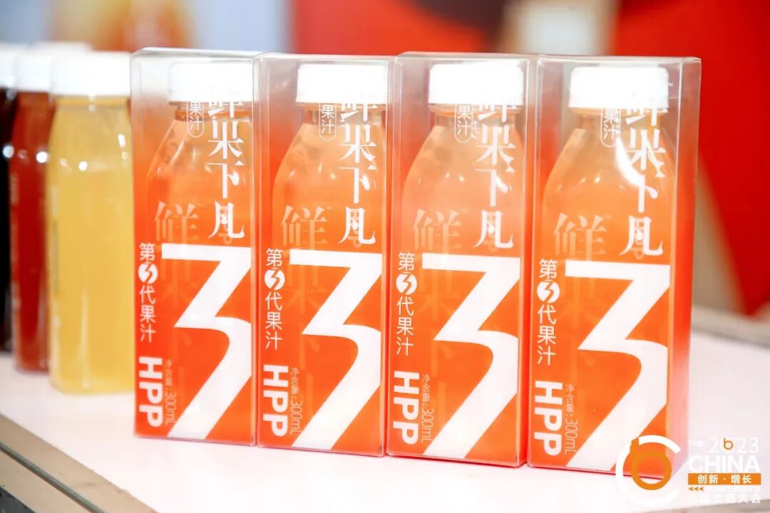 就是符合高品质,符合高端化,符合我们老百姓的生活需求高端果汁符合高品质、高端化趋势,在2023年有很大机会去年,我们做了一款高端果汁,名为“鲜果下凡”,一瓶产品的单价在28,现在鲜果下凡的销量也在往上走。