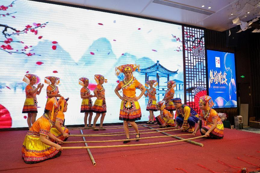 △寓意勇敢、乐观、向上的壮族特色竹竿舞△广西南宁会场的壮族特色竹竿舞,寓意了盼盼销售团队也将以坚韧不拔的精神和勇敢、乐观、向上的态度面对集团销售任务。滑动查看更多