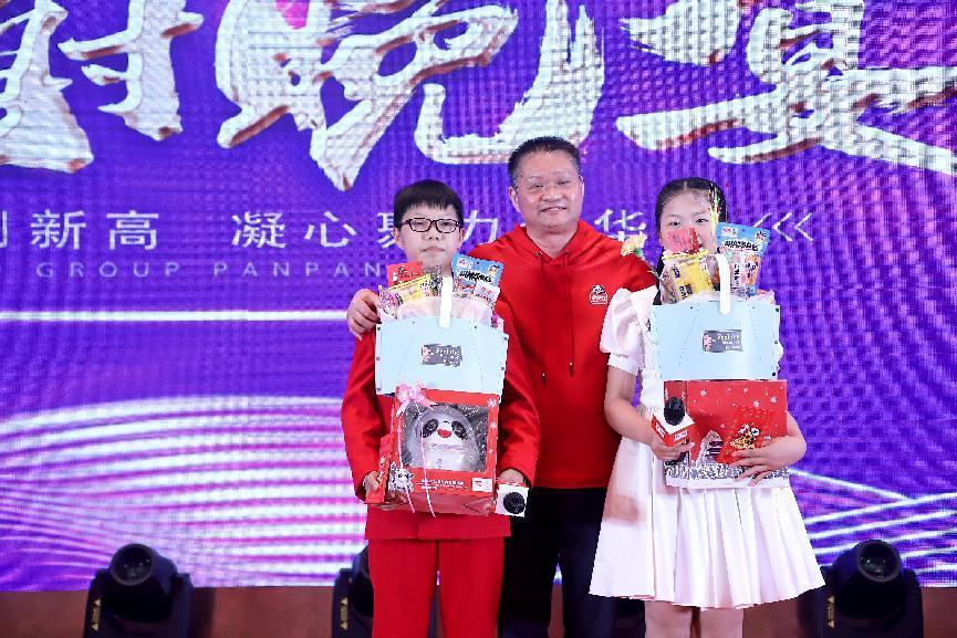 △蔡金垵董事长为两位表演的小嘉宾颁奖△厦门会场,盼盼食品集团董事长蔡金垵出席,并发表致辞,答谢经销商家人们一年来的支持和努力。