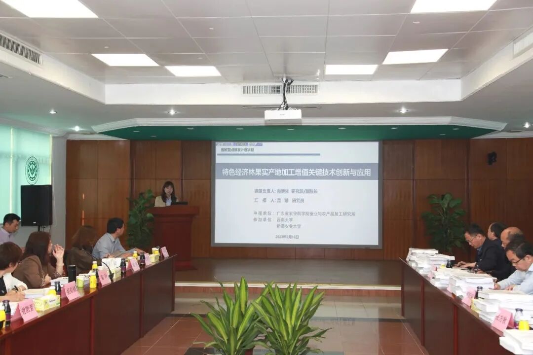 3月16日,由省农科院加工研究所牵头主持的国家重点研发计划项目“特色经济林采后果实与副产物增值加工关键技术”课题绩效评价会在省农科院加工所顺利召开农业农村部科技发展中心项目专员黄永震,广东省科技厅农业农村处胡胜春处长,中国林业科学研究院林业研究所裴东研究员作为专家组组长,西北农林科技大学徐怀德教授、中国科学院华南植物园蒋跃明研究员、华南农业大学陆旺金教授、广东生态工程职业学院张方秋研究员、华南农业大学陆旺金教授、暨南大学欧仕益教授、华南师范大学阳成伟教授作为课题绩效评价专家,我院科管部负责人,加工所所长,课题主持人及项目组成员40多人参加了会议。