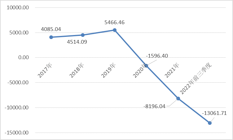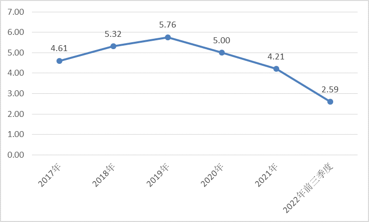 2020年、2021年,其营收分别为5.00亿元、4.21亿元,分别同比下降13.12%、15.84%;2022年前三季度为2.59亿元,虽然没有2021年同期数据做对比,但基本可以确定出现较大幅度下滑。