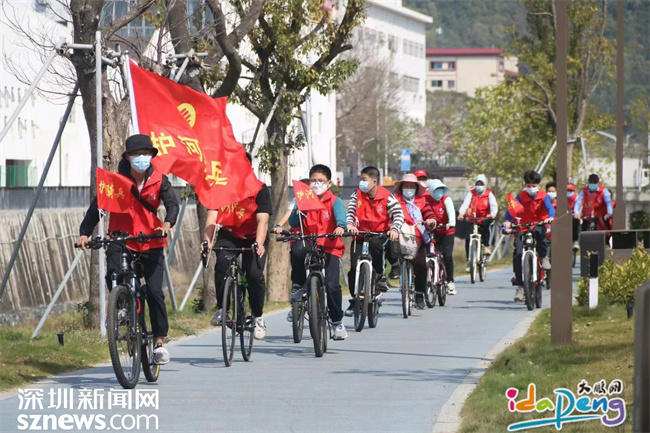 “一二三,出发!”随着领队的一声口令,50名“护河骑兵”志愿服务队的志愿者,骑着自行车从葵涌公园出发,沿葵涌河开展巡河任务他们沿途查看河道环境卫生、污水排放和安全隐患等情况,并对河道垃圾进行清理、对河道水质进行检测。