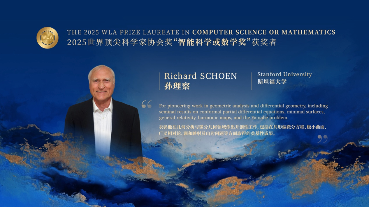 2025顶科协奖“智能科学或数学奖”授予斯坦福大学人文与科学学院名誉讲席教授孙理察,表彰他在几何分析与微分几何领域作出开创性工作,包括在共形偏微分方程、极小曲面、广义相对论、调和映射及山边问题等方面取得的奠基性成果。
