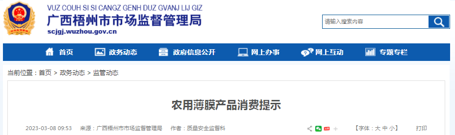 梧州市市场监管局提醒消费者在选购农膜时注意:一、根据用途选择根据农作物种植养殖需求、农膜产品使用环境、周期选择不同厚度、不同功能的薄膜如不同颜色的农膜对光的吸收、折射和反射不同,对各类农作物的影响也不同,其经济效益相差悬殊。