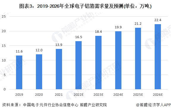 预计到2026年全球电子铝箔市场需求量将达到22.4万吨
