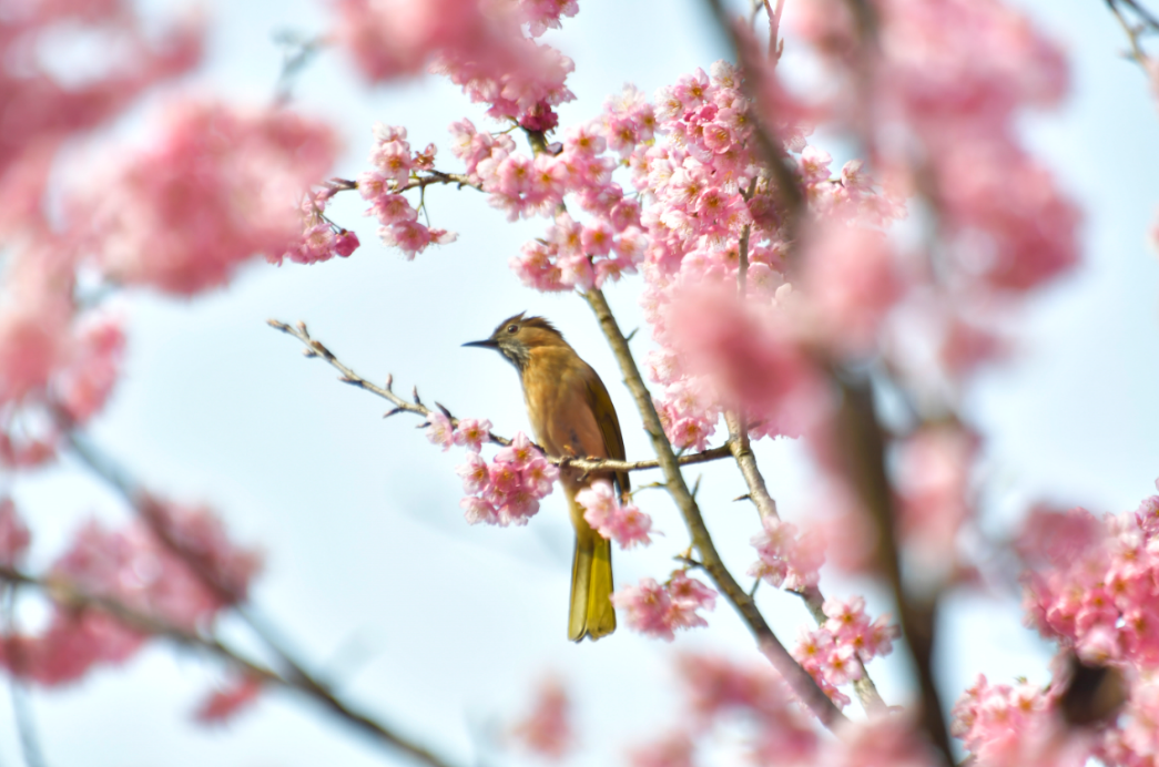 南山植物园鸟栖枝头 崔景印 摄春天和美好如约而至,南岸区铜锣花谷生态园繁花盛开,放眼望去,满是春意,桃花、杜鹃、樱花、月季等在阳光的映衬下更显娇媚苍翠此外,南山植物园山茶花、郁金香、玉兰、海棠、桃花等也争相开放。
