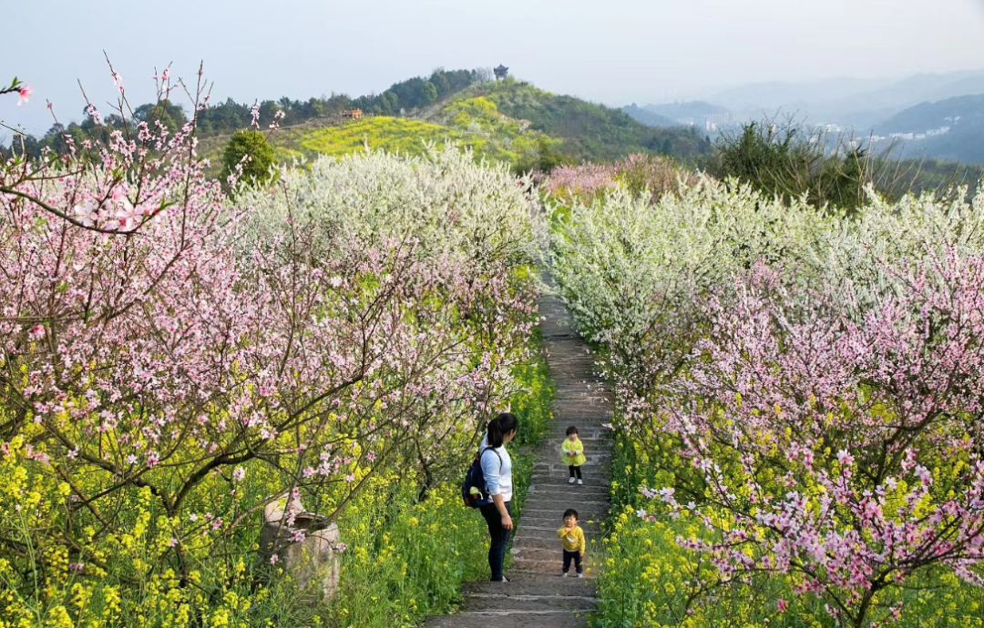 桃花笑春风 合川区肖家镇供图同时还设置有六个娱乐环节:赏:在上马寺花果园、百年李树园赏花;游:参观和游览以纪念卢作孚先生为主题的作孚祖屋、作孚森林公园、船王广场等景观;玩:在新学村金翰阳光柑橘基地、稻虾轮作基地采柑橘、钓鲜虾、摘蔬菜;