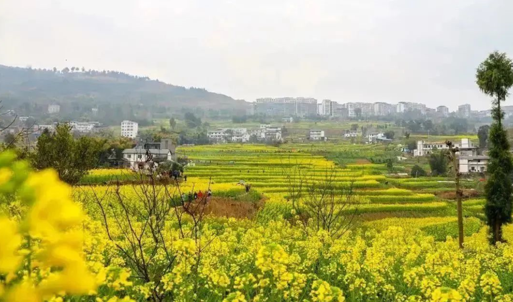 大足各地金黄油菜花盛放 大足区融媒体中心供图在大足区,海拔500多米宝顶山上,随处可见一片片金黄色的菜花地,漫步在菜花田坎上,仿佛置身诗意一般的画卷此时,拾万镇、三驱镇等平坦地区的油菜花正开得正好,届时,市民可前往花海,体验“满目金黄香百里,一方春色醉千山”的景象。