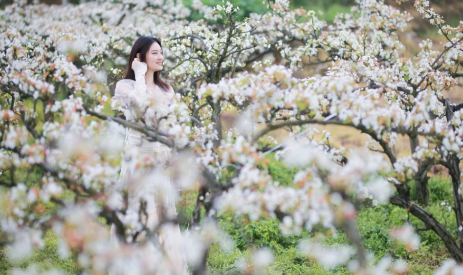 春日里,梨园里梨花开放 万州区委宣传部供图三月底四月初,梨园美不胜收。新改建的梨园总面积约11.5万平方米,石梯蜿蜒曲折,四通八达,山坡上的梨花景观因此格外立体可感。赏花地:梨园