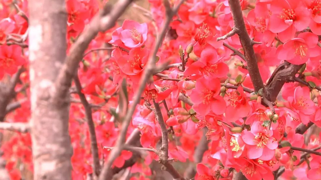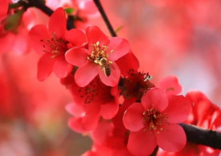 贴梗海棠悄然盛放 大足区委宣传部供图眼下这个时节,大足区贴梗海棠已悄然盛放分布于大足区的海棠花品种繁多,每年春天,水峰社区都会上演千株海棠齐开的动人场景,今年亦然而贴梗海棠通常是立春后,开得最早的海棠品种,花朵间点缀着黄色的花蕊,蜜蜂穿行其间,彰显着春天的美好。