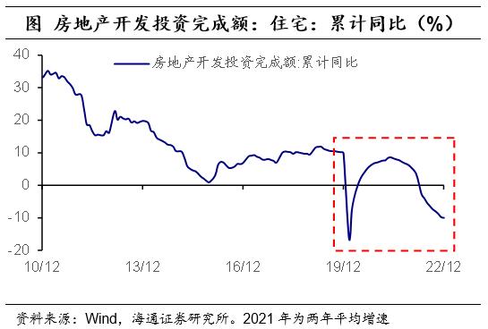 但从2021年下半年起,随着地产调控政策逐步加码,叠加疫情对居民收入端的冲击,房价的下跌周期继续演绎从房地产投资来看,从2019年下半年起,房地产开发投资完成额累计同比增速开始下行,这也是1998年以来的首次大幅回落。
