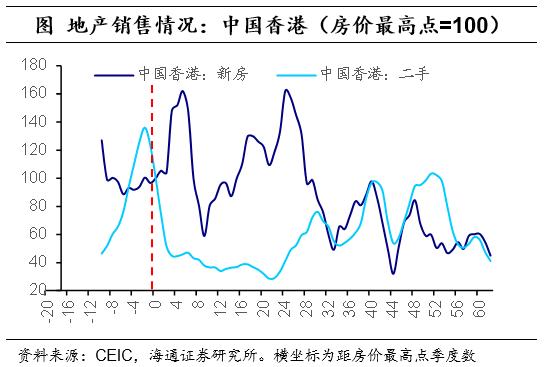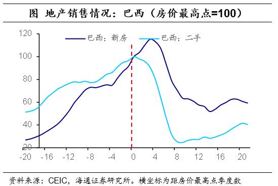 其中,西班牙、阿联酋、中国香港(二手房)、美国和巴西(新房)的地产销售见底,分别花费了23、26、22、16和14个季度,相对较快的是英国、马来西亚和巴西(二手房),分别花费7、4和8个季度就触底回升中国香港的新房销售由于受到政府供地限制影响,波动较大,不能完全反映市场走势。