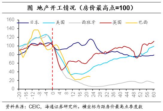 整体来看,地产下行的“长尾”效应非常明显无论是从房价、房屋销售还是房屋生产数据来看,海外经济体的房地产下行周期至少持续5-6年,而后才开始进入缓慢修复阶段,而且即使在泡沫破裂10多年后,也很难修复至泡沫破裂前水平。