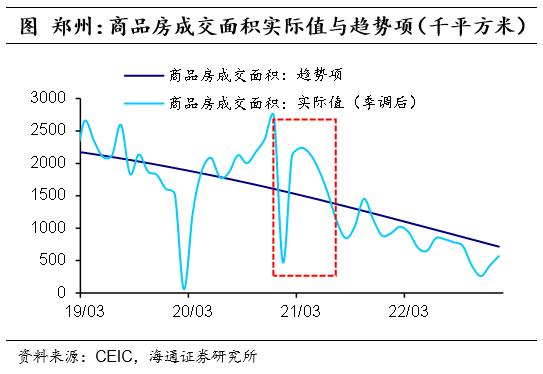 在疫情防控期间,整个房地产行业的正常运行受到了限制,上游地产开发企业停工停产,下游售楼和网签暂停运行,均使得地产销售在短期出现明显的“缺口”而当短期疫情冲击结束后,前期积压需求集中释放,使得地产销售反弹超过趋势线,这个超出趋势线的“增量”一定程度上是为了弥补前期的“缺口”,而非意味着需求真正改善。