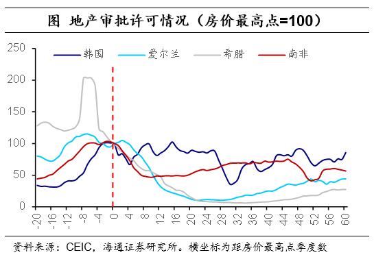 仅有英国、韩国、俄罗斯的数据恢复到泡沫破裂前的水平,其中,英国和韩国的修复花费了10年以上的时间,而俄罗斯主要受益于土地和住房私有化改革进程的推进,具有一定的特殊性部分经济体如西班牙、爱尔兰、希腊、南非、泰国等,在泡沫破裂的10年后,其生产端数据也只修复至泡沫破裂前的一半或更少。