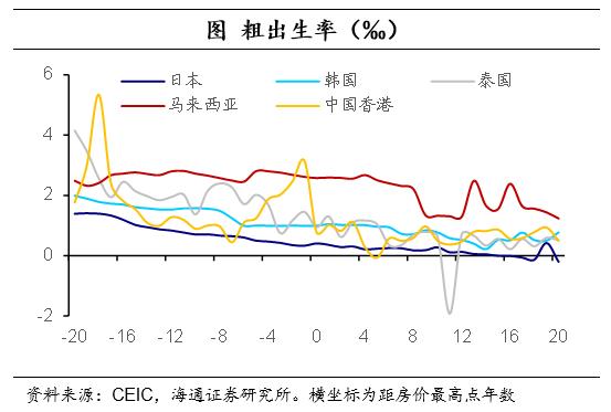 其中,马来西亚的地产下行周期最短,仅7个季度,而日本经历了最长的地产下行周期,长达近20年(73个季度)。