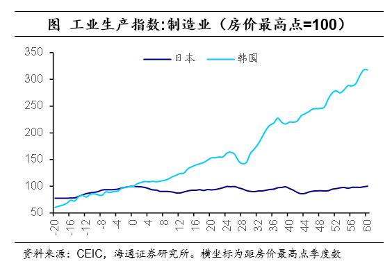 反例则是日本,在地产泡沫破裂后,由于前期地产行业挤压实体经济、去杠杆缓慢拖累企业投资扩产,制造业长期低迷,经济增速中枢下移,使得对地产的消费需求长期疲弱