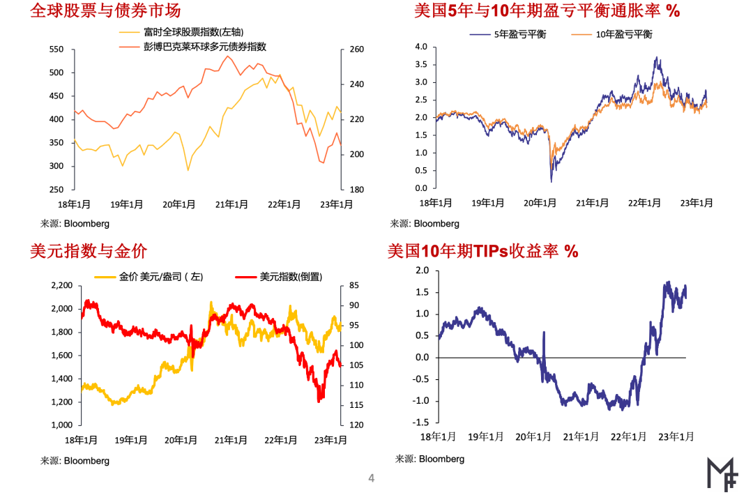 ▶在这一背景下,美联储主席鲍威尔最近在国会作证时的表态使投资者的预期与美联储的政策前景更为一致,目前联邦基金利率期货价格显示终端利率(目前预期为5.6%)远高于1月份时的预期(低于5%)重要的是,之前投资者预期2023年下半年美联储将降息近50个基点,但目前的市场指标暗示年底前仅会小幅降息。