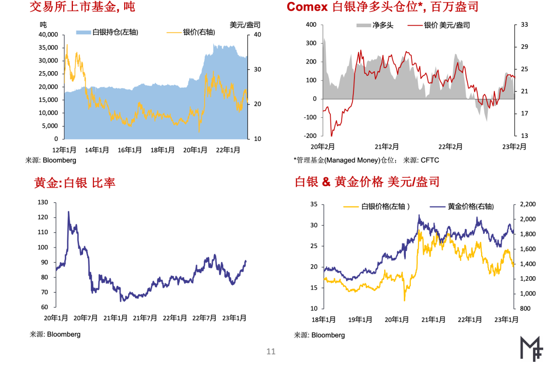▶如下所述,2023年早期银价走势受到好坏两方面因素的影响一方面工业金属需求总体上仍稳健,其中光伏行业是主要需求增长源但另一方面在最近中国将其2023年GDP目标增速定为5%左右(创数十年来目标增速的新低)后,工业金属价格都面临压力。