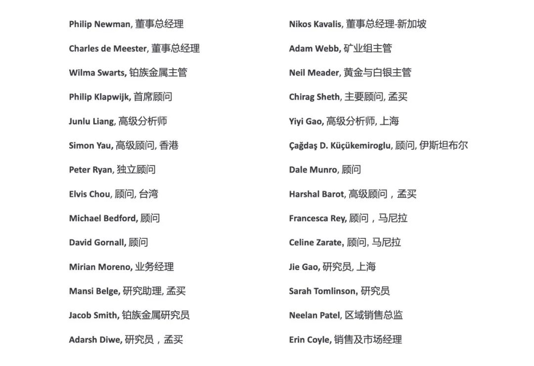 Metals Focus 感谢以下机构对《贵金属月报》中文版的支持