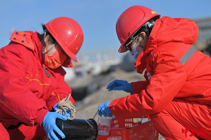冀东油田开发技术公司化验中心的女职工在取样 宋嘉 摄“我觉得你特别像药剂师”“海妹,高锰酸钾溶液配制非常关键,移液管要直立,转移到容量瓶一定要停靠15秒,容量瓶一定要按照标注要求,到四分之三体积先平摇几次……”2月24日,化验中心员工周硕贤和孙海妹穿好白大褂,正在进行溶液配制,为下午取回来的样品做检测准备。