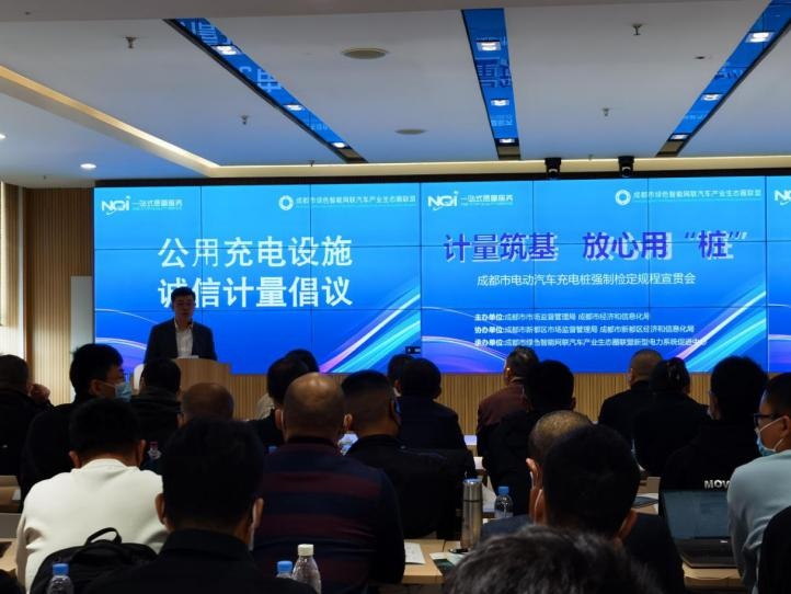 3月14日,由成都市市场监督管理局、成都市经济和信息化局指导,新都区市场监督管理局、新都区经济和信息化局联合协办,成都市绿色智能网联汽车产业生态圈联盟新型电力系统促进中心承办的“计量筑基,放心用‘桩’”——“成德眉资”电动汽车充电桩计量检定“3.15”宣传活动在新都区质量基础设施“一站式”服务中心举办。