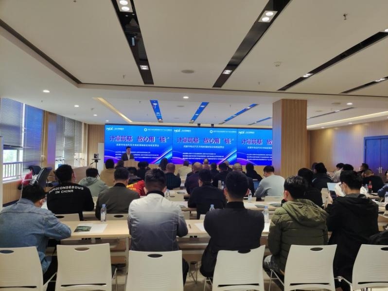 活动现场,成都市绿色智能网联汽车产业生态圈联盟新型电力系统促进中心以“强化计量管理、促进诚信自律、保护消费权益、共谋产业发展”为题向充电桩企业发出联合诚信计量倡议成都市计量检定测试院行业专家就《电动汽车交流充电桩》(JJG1148-2022)、《电动汽车非车载充电机》(JJG1149-2022)、《电测量仪表校验装置校准规范》(JJF1923-2021)等标准以及电动汽车充电桩计量检定相关注意事项进行了详细解读。
