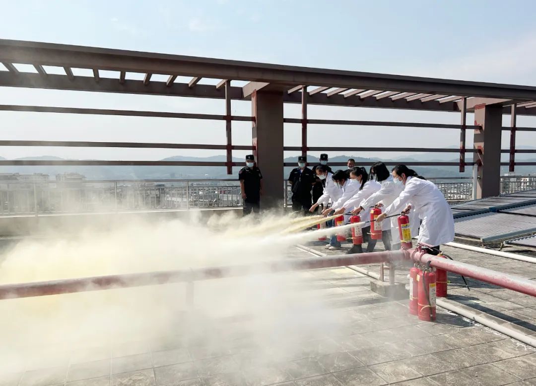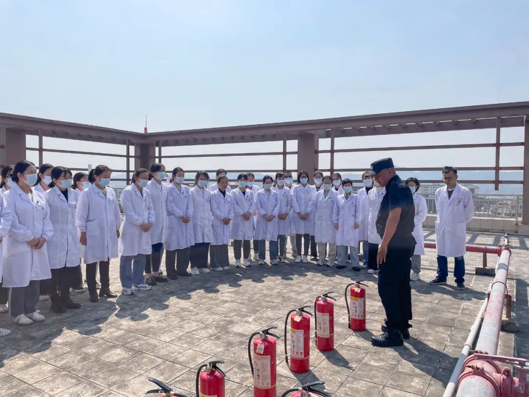 演练前,由医院安全保卫部组织员工学习消防器材使用方法及注意事项演练以门诊急诊综合楼七楼医学检验中心库房发生火灾险情为背景,按照消防应急预案,紧张有序开展火情报警、初起火灾扑灭、人员紧急疏散、灭火救援等环节。