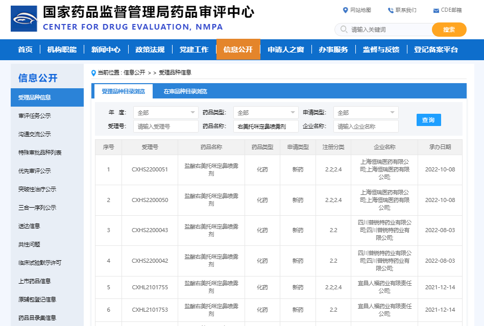 据CDE公开信息显示,国内目前暂无盐酸右美托咪定鼻喷雾剂上市。除恒瑞外,另有四川普锐特药业提交了盐酸右美托咪定鼻喷雾剂的上市申请。此外,宜昌人福药业的该品种的临床申请也获CDE批准。